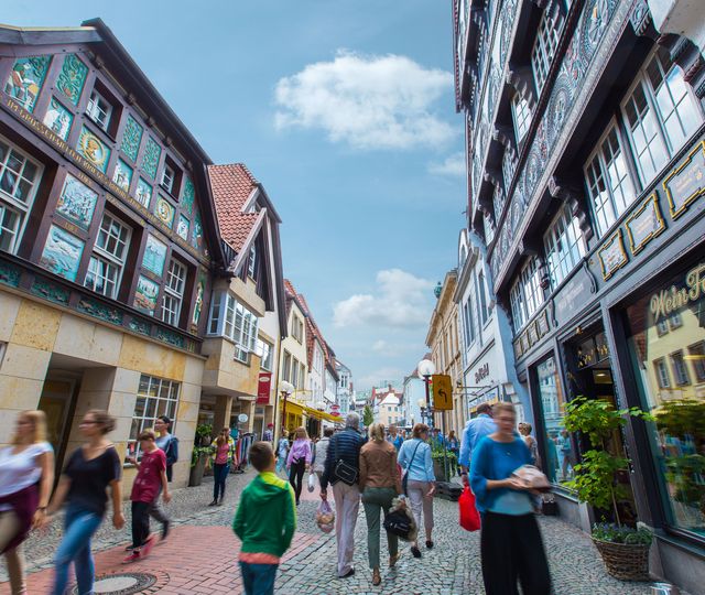 Der Blick aus dem Osnabrücker Rathaus hat sich seit den Friedensverhandlungen vor 350 Jahren nur unwesentlich verändert: Gotische Treppengiebel und Spitzbögen prägen hier das Stadtbild. Auf dem Weg aus der Stadt heraus würden die Friedensreiter allerdings staunen. An den Ausläufern des Teutoburger Waldes rund um Hasbergen lassen sich spannende Spuren der Industriekultur entdecken. Im Silberseestollen etwa, ein Besucherbergwerk des Naturparks TERRA.vita, finden Sie einen versteinerten Meeresboden und Spuren Jahrmillionen alter Meerestiere. Das Örtchen Hagen a.T.W. hingegen fänden die Reiter von einst kaum verändert vor. Denn die Gemeinde besann sich auf die alte Tradition des Kirschenanbaus, legte Streuobstwiesen neu an und pflegt die alten Baumbestände. Im Frühjahr radeln Sie hier durch ein luftig-leichtes Gestöber schneeweißer Blütenblätter.