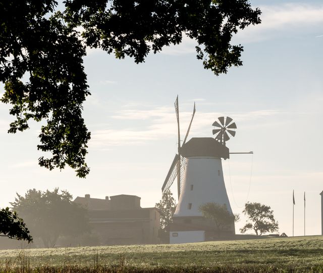 Die weithin sichtbare Wallholländer Windmühle aus Bruchsteinquadern wurde 1870 erbaut.