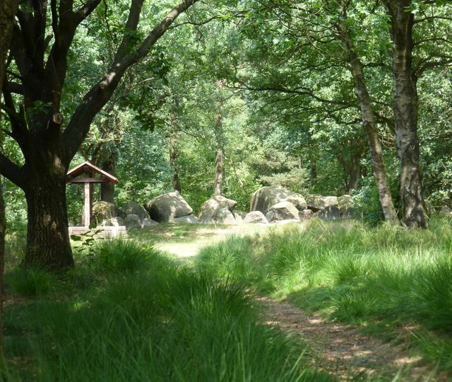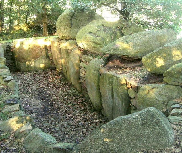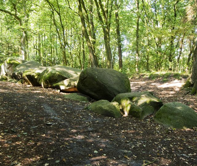 An der Dorfstraße stößt man umgeben von Wald und Feldern auf mehrere benachbarte Megalithanlagen.